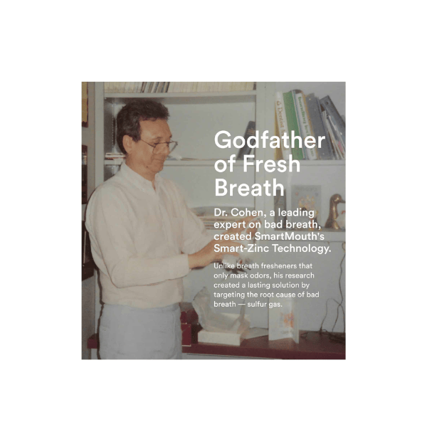 Dr. Cohen was a leading authority on the etiology of halitosis, which is the study of the origin and diagnosis of bad breath. His many years of research on the cause of bad breath led to the creation of our patented zinc ion activated technology.