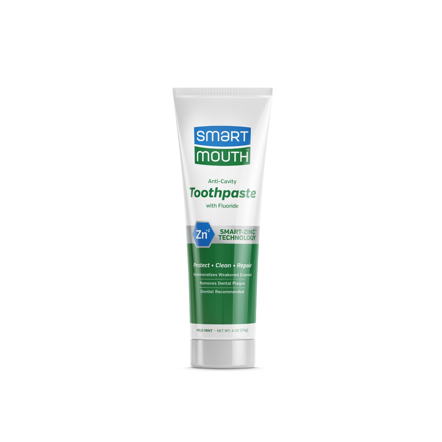 SmartMouth™ Premium Zinc Ion Toothpaste combines zinc ion technology with fluoride to strengthen enamel, remove dental plaque, prevent cavities and provide sensitive whitening — all with a mild mint flavor and no aftertaste.