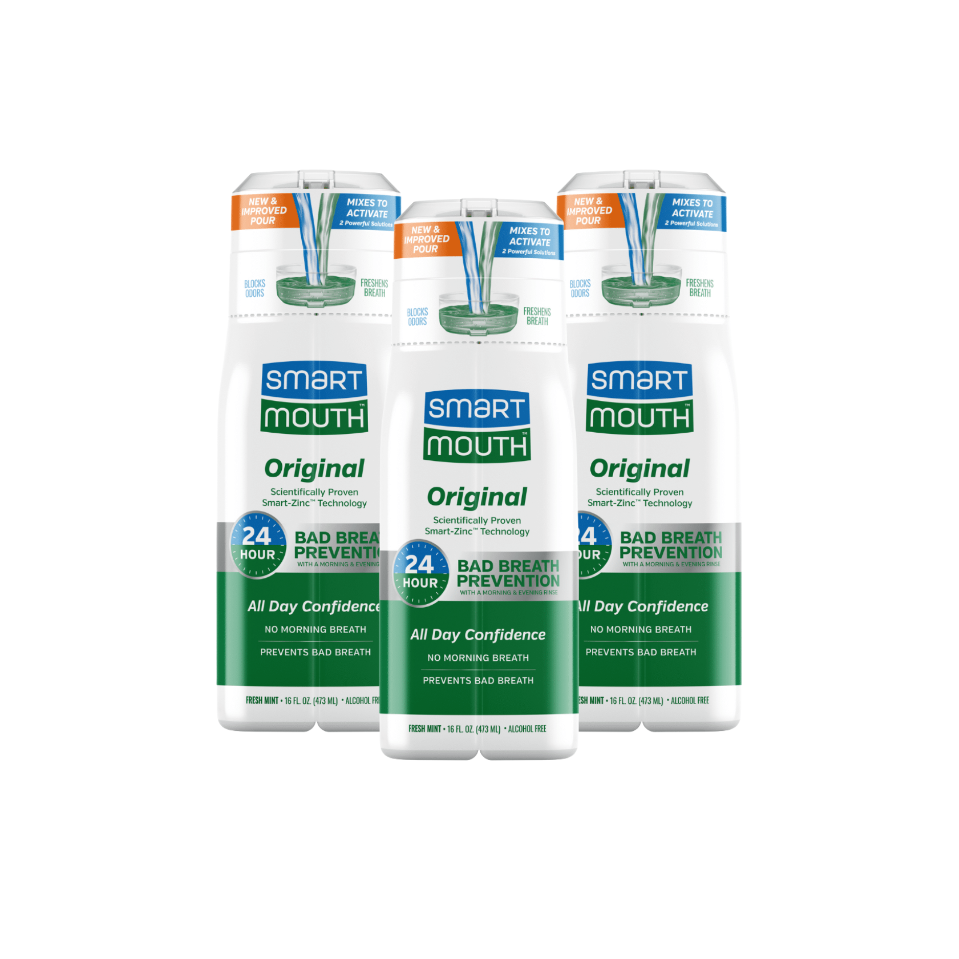 Dealing with bad breath can be both embarrassing and socially inhibiting, but with SmartMouth™ Original Activated Breath Rinse, you’re offered a groundbreaking solution. Our unique product doesn’t just mask bad odors; it eliminates them and prevents their return for 24 hours, ensuring your breath stays fresh all day long, with just two uses daily.